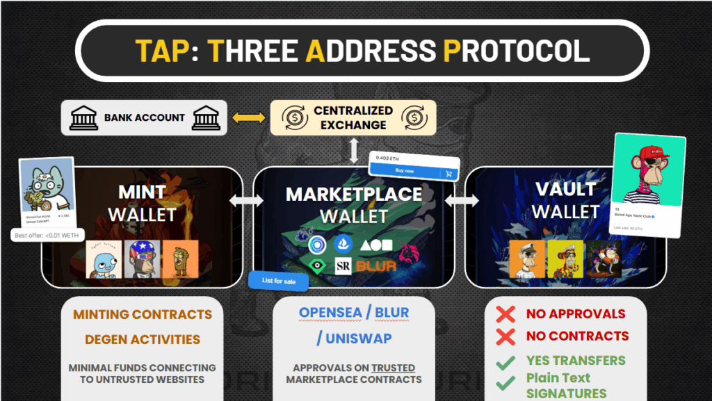 - Mint Wallet: For minting, airdrops, and untrusted projects.